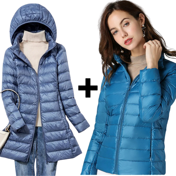 Sky+Aurora - Ultralight Jakke & Lang Jakke med Hvide Andefjer